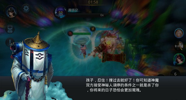 开局进去后往左下角走,先等5秒(为了配合4级南无CD和魔悟空大招CD),然后开怪,然后扇子把猴子扇到右上角后马上往回跑。白象会跳过去晕,然后魔悟空大招会给白象。