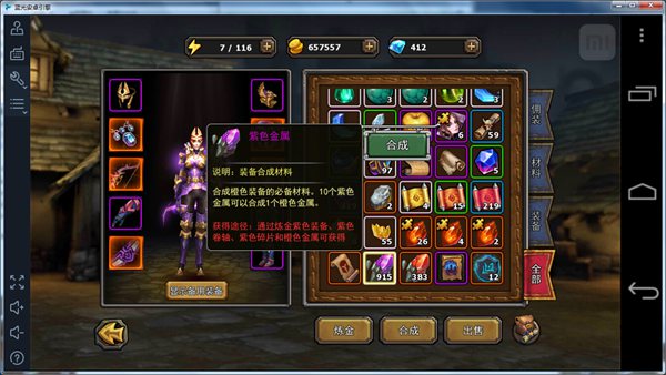 紫色金属来源就比较简单,普通副本爆的紫装炼金即可获得,当然也可以在商城内购。