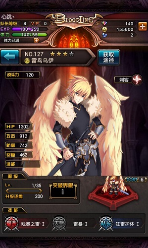 初始属性:战斗力 120. HP 1302. 攻击 912. 防御 742. 回复 462.