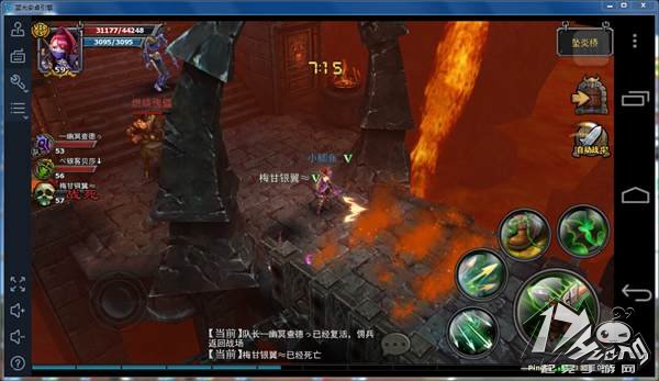 另外这个地图和第五章的硫火要塞一样,有喷火的地方。这个要注意喷火的时间间隙通过,别看和第五章的地图一样,但是这个火的伤害相当高,小编被喷一次掉9000左右的血,所以一定要操作角色躲避。手机上操作不是很方便,可以尝试一下蓝光手游大师,在电脑上感觉就不一样了。