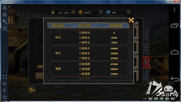 爵位需要对应的声望值,怎么获得声望值,小编之前的攻略都有介绍,这里不做赘述。