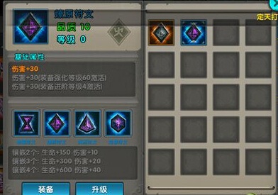 首先我们来看蓝色品质的符文,品质4到品质10的符文都是蓝色品质符文,这品质的符文触发全部属性需要装备强化等级60和精炼4。前期基本都是以蓝色符文为主啦,而且都是先已触发两条属性为前提,当然能触发三条属性最好啦。但是前期实在是太缺精炼石啦。所以人物30级的时候装备可以强化60级,也是人物属性的一个小爆发点。这个阶段(35级前)优先强化10品质的蓝色符文。