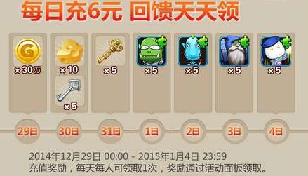 1. 活动期间,每天充值6元立送额外奖励