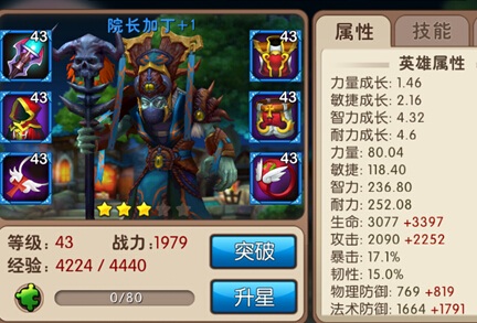 属性对比分析:因为英雄升星是增长其优势属性更多的,所以在血精灵达到3星时,应该与院长相差无几。