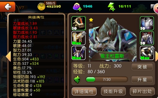 属性分析:通过我叫MT2狼王杜蕾斯的属性可以看出,该卡牌的敏捷加成和耐力加成非常不错,力量和耐力就不怎么样了。所以注定了他是一个高输出低防御的英雄。