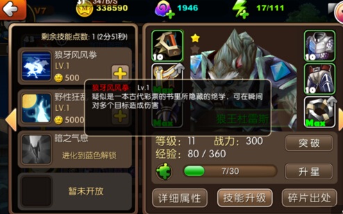 技能加点顺序推荐:狼牙风风拳>野性狂乱>暗之气息