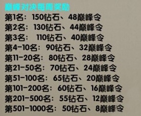 在巅峰对决里面,根据玩家每周和每日的情况,是会分别奖励不同的巅峰令和钻石的,其中每日是只会奖励巅峰令,但是每周根据排名不同会分别发放不同的钻石和巅峰令,因此各位可以留意一下。