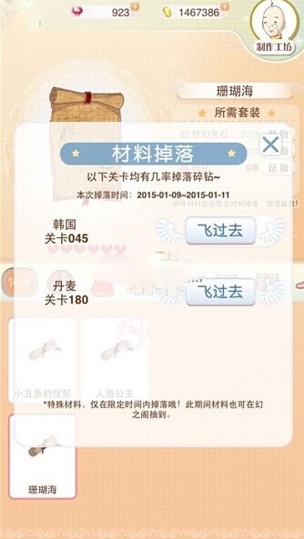 本期限定制作的二张图纸珊瑚海、人鱼公主都需要碎钻材料才可以制作,为了制作图纸小伙伴赶紧去刷材料吧!