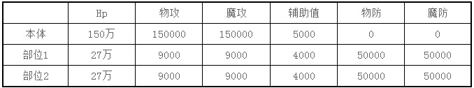 相信已经打过的朋友深有体会,这boss越打越疼,加多少防御都是一回合就减光的事,最恶心的地方在于,如果对部件伤害不足2W就会触发减防5000,而且是两个部件一起减,也就是减防10000,可是部件有5W的超高防御,导致前期有无法对其造成过高的伤害。