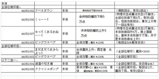 注意,本体只会行动一次,所以技能只选择一个。但是全部位破坏之后会有类似狂暴的效果,打起来非常难受。