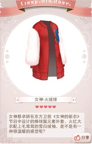 这是少有的女神系列的定配款,我还有很多地图没刷到最高分,但目前见过的女神系列顶配只有它和流苏,悠扬已经被深蓝替换了hiahia 偏题了,好了继续说它。作为一件毛茸茸的外套,简直太没有底线了,你竟然去放水关博眼球抢镜头,为了出名太无耻啦!
