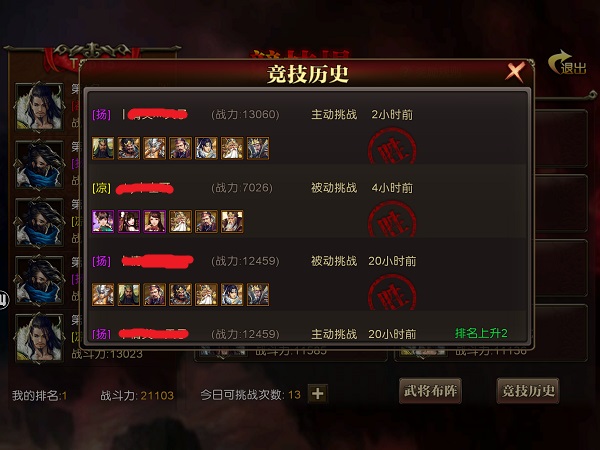 竞技场的战斗模式和斗将相似,只不过后者是pve而前者是pvp。作为《千里走单骑》双轨系统中的卡牌系统核心玩法,玩家需要通过合理排布手中的武将,使他们发挥最大的作用。