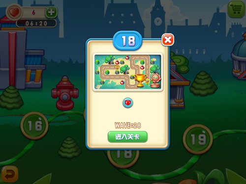 过关策略:虽然开局防御塔很关键,但布局的位置也非常重要,建议在入口位置布局一根,其他的防御塔可布局于明星防御塔的周边位置,后面的位置较为宽敞比较有利于集中火力。如果前期能够获得一根范围伤害的防御塔,例如风车塔、火焰贝壳塔等,那么一定要优先升级。万能胶水塔在本关反而显得不是那么重要,一句话总结,火力才是本关的通关关键。
