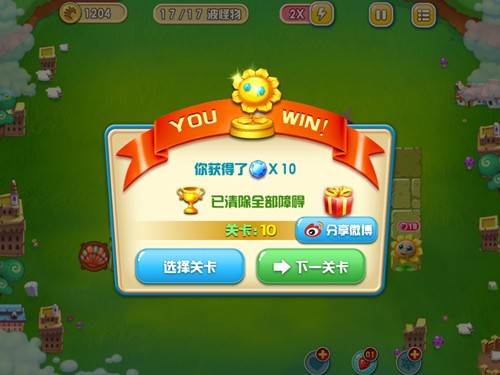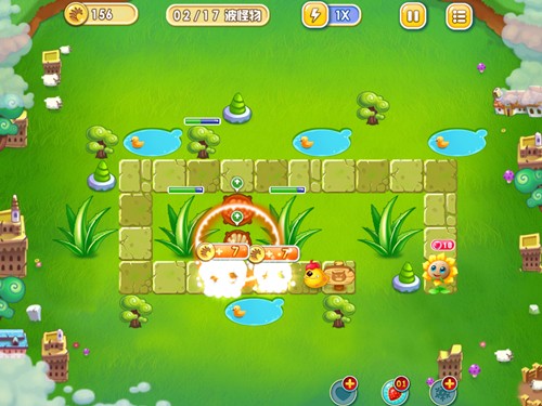 地形分析:本关的背景略小清新,绿幽青草、池中小鸭子都是障碍物,这么可爱又迷人的画面,小编还真有点舍不得将它们全部清除。地形呈现一个“口”字型的状态,虽然路线较短,但也可以很好地摆设火焰贝壳塔。另外,该关卡有4处较大的青草障碍,如果前期能够将他们清除将会更容易通关此关。