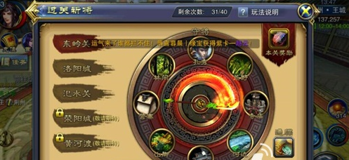 过关斩将关卡:东岭关、洛阳城、汜水关、荣阳城(未开放)、黄河度(未开放)