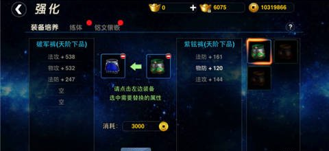 此外,每次装备培养只能替换一条属性,而且属性必须是相对的,比如生命值只能和生命值交换,不能用生命值更换物防、物攻等属性。所以,我们在进行装备培养时,要充分考虑牺牲的装备有哪些属性是值得继承的。另外还要提醒各位玩家,装备的主属性是无法更改的哦,能够替换的只有随机属性。