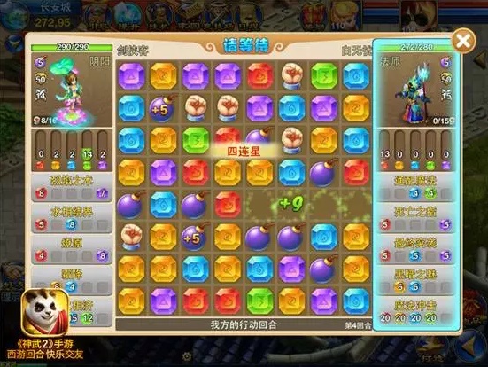 2、消除方块可以获得魔法值,消除什么颜色的方块即可获得对应颜色的魔法值,魔法值足够即可释放技能,释放技能则需要消耗对应的魔法值;