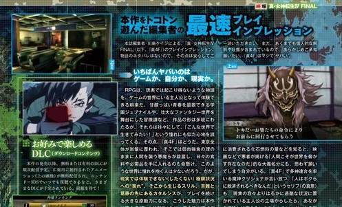 3DS平台RPG游戏《真女神转生4:FINAL》本周杂志新情报,这次展示了在本作初登场及重绘的恶魔们姿态,此外还有主人公所属的“人外HUNTER”相关情报。本作由ATLUS发行,预定于2016年2月10日发售。