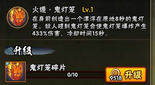 这个技能的冷却时间很短,只有15秒,相比手里剑的24秒,火遁·鬼灯笼实在是扰乱战场的好东西,一般是用来防止敌人突进,是一个防守技能,可以打断连招中的敌人,但是被打断的人也可以立刻发起新的连招,火遁·鬼灯笼的战场定位在防守干扰,并非伤害。
