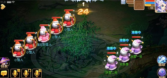 简单的说就是在回合制战场中去打雪仗喽~不仅可以每回合丢小雪球还要5个技能可以丢,每场战斗每个技能限制使用一次。