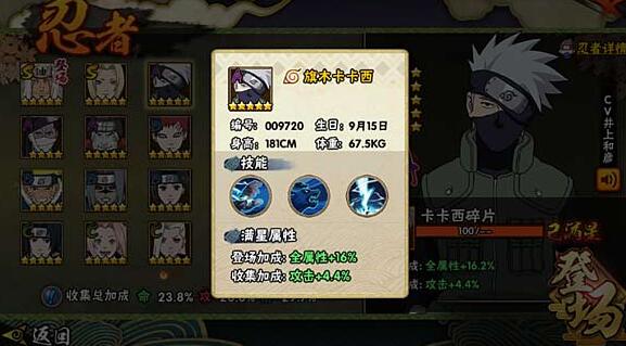获得途径:集齐40个卡卡西碎片可激活旗木卡卡西。