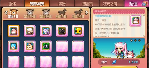 目前宠物只能从糖果屋中用糖果购买。宠物有1日、10日、30日供玩家选择。