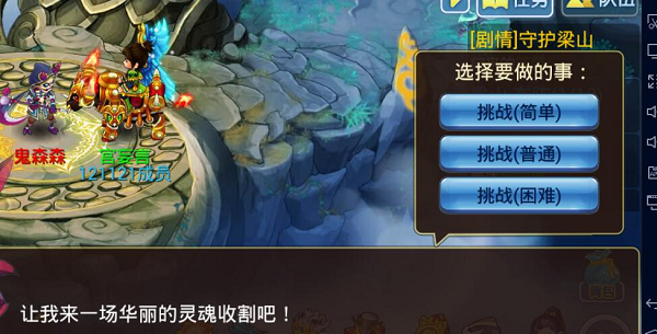 玩法:此NPC的队伍比较强大,需要强大的输出阵容,先解决掉鬼面,输出不够的队伍,则要考虑带个血厚的肉盾,还要配备法术伤害的星将对付鬼灵,另外务必配备一个奶妈,做好持久战的准备。阵法推荐雁行阵(增加速度,先出手)、云龙阵(怪主要物理输出)。
