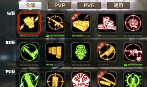 【天赋系统】点击游戏主界面左侧边栏的【天赋】按钮,即可进入天赋系统。天赋可以增加武器、角色等各项属性值。通过消耗天赋点和金币可以提升天赋等级,提高天赋属性,并增加角色的战斗能力。在天赋系统中,我们可以很清楚的看到天赋细分为PVP、PVE和通用三类,并根据等级不同陆续开放不同的天赋,当玩家等级达到5级后,角色等级每提升5级,都会开放5个新天赋。天赋有红色、黄色和绿色三种,其中黄色主要的是增加枪械属性,红色主要是在PVE中增加角色生命值、经验获得等人物属性,绿色则是多用于生化模式的天赋属性加成。