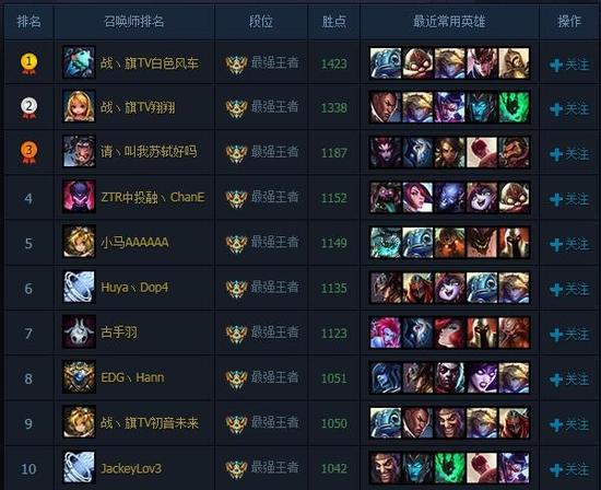 现国服前十的名单中出现了不少直播平台主播身影