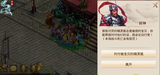 那么先说下财神:财神身边一共有九个小怪,小怪的类别有宠物狗、财气猪、精灵鼠以及功夫龙,道友们需谨记:只有功夫龙具有攻击能力。每一次进入战斗都至少存在一只精灵鼠,道友只需除掉小怪中的精灵鼠,切记不可误伤了其中的宠物狗,否则财神将会在下一回合中施放障碍技能,百发百中!财神总共会召唤二十次小怪,每一个回合的游戏策略基本一致。战斗结束后,财神会根据战斗过程中财气猪和精灵鼠的击杀数量来发放奖励,不过误伤财气猪可是扣奖励。建议配置队伍如果是在端游配置个敏水出来3个龙的话敏水出手冰个宠物狗,法金直接五法秒冰住的哪个狗这样也不会秒到猪,一下就杀完了,速度很快。基本出怪就这几种方式(3龙1老鼠剩下猪、狗,2龙1老鼠剩下猪、狗、1老鼠剩下猪、狗,3龙1老鼠剩下猪、狗)。《问道》手游的话不知道何时升到会五法等级,就算升到估计也秒不死,端游140级4W法伤的金不上刀子有时候都秒不稳,道行跟的上的话有个敏水冰龙也是不错的,然后法BB或者人杀老鼠。