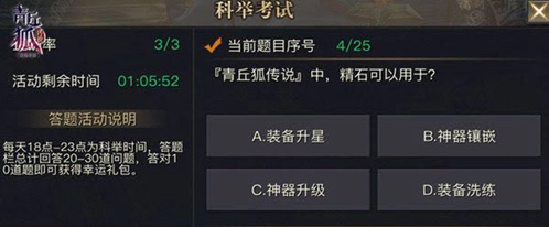 青丘狐传说手游中科举考试的题库极广,涵盖历史、科学、游戏、生活常识、民俗等各个领域,是那些涉猎广泛、爱好众多的玩家检验自己的知识储备的最佳活动,而对那些“成绩”不怎么好的玩家来说,一些趣味的知识常识能丰富大家的眼界,游戏学习两不误。此外,还有各种脑筋急转弯玩供玩家挑战。当然了,不管是谁都不可能任何知识都了解,这个时候就需要度娘帮忙了。你懂的!