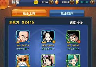 库林可以对敌方横排造成伤害,放前排左边位置,一击可以直接横扫敌方前排。碧黛儿可对后排造成单体高伤,而且可以治疗己方生命,充当一个半奶妈的角色。后排的布尔玛也是个奶妈,队伍的续航能力得到保障。孙悟空放前排右侧可对敌方进行单体攻击,并触发连击。而龟仙人在后排,辅助伤害,不仅有单体攻击而且可以护盾吸收伤害。琪琪在后排的十字形攻击可用来辅助龟仙人释放单体攻击。